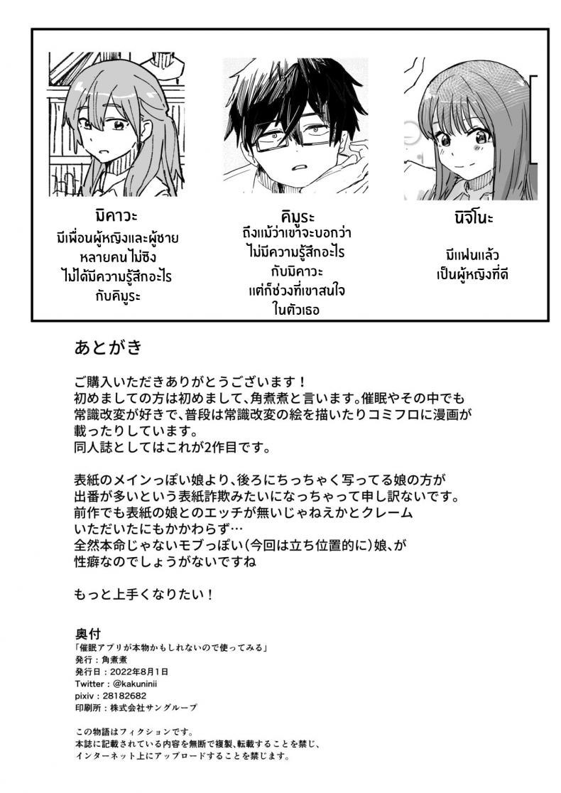 อ่านโดจิน18+แปลไทย โดจิน การ์ตูนโป๊ โดจินแปลไทย เรื่อง แอปสะกดจิตดั่งใจปราถนา [Kakuninii] Saimin Appli ga Honmono Kamoshirenainode Tsukattemiru