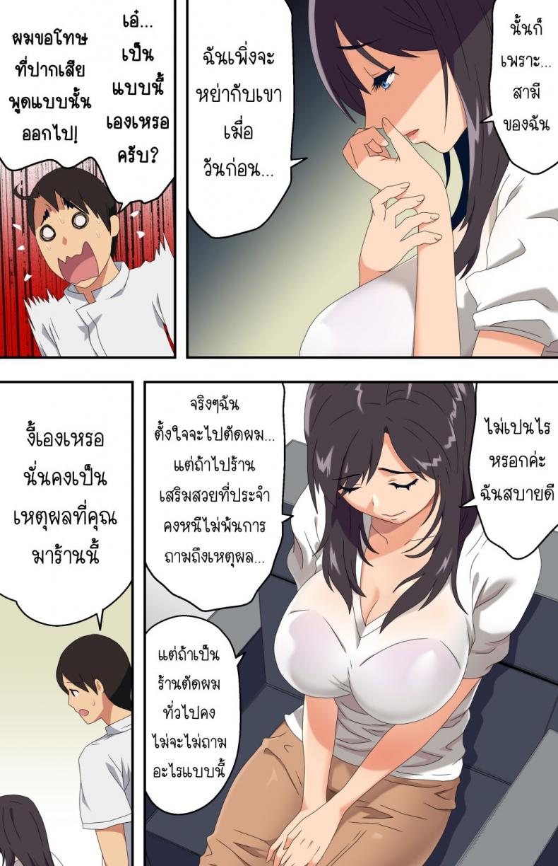 อ่านโดจิน18+แปลไทย โดจิน การ์ตูนโป๊ โดจินแปลไทย เรื่อง ภรรยาสาวผู้อาภัพกับช่างตัดผมสายตาอ่านกิน [Kamakiri Farm (Kamakiri)] Jimi na Tokoya ni Yattekita Wakazuma to Usugurai Tennai de